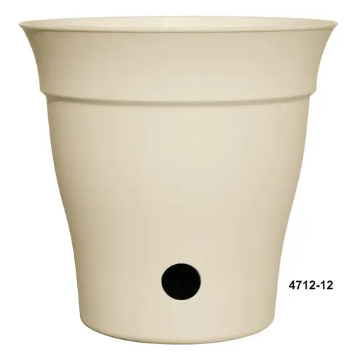 Contempra Self-Watering Round Planter with a Mat Textured Finish, Water Reservoir and exterior Hole to monitor water level. Made in Canada with recyclable and non-toxic thermoplastic, U.V. protected.