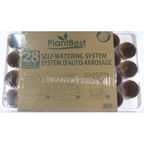 Kit contains 28 x 2.25" round coconut coir pots and a carrying tray to hold water and allow transplants to absorb water from the bottom.