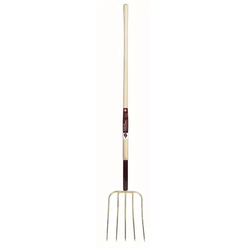 Lift, move and mix fertilizer, manure or compost with the help of the Garant Agro Series manure fork. This tool is equipped with an ultra-robust head made of a single piece of forged and tempered steel. Its 5, 13? (33 cm) tines are sharp and narrow for better manipulation of the manure. This manure fork is designed especially for farmers looking for a robust, efficient and comfortable tool.