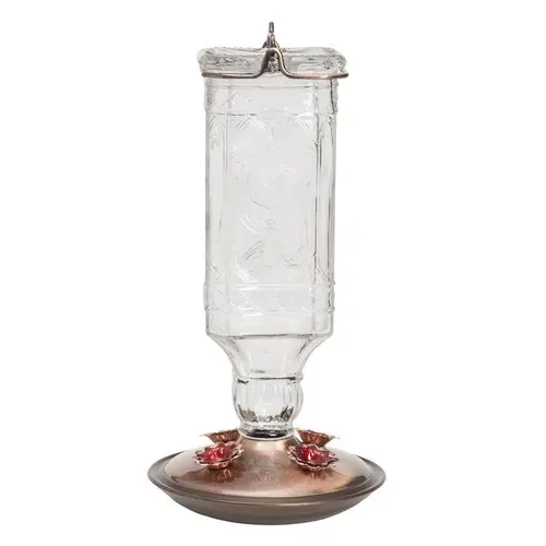 The Perky-Pet Antique Glass Bottle Hummingbird Feeder, is reminiscent of 1930’s style, crafted with a transparent red glass bottle and a brushed copper finish base. It features four flower-shaped ports, ensuring enough room for many flitting beauties to gather. This beautiful, unique glass bottle is an eye-catching vessel for feeding delicate hummingbirds as well as brightening up any lawn or porch. It makes an ideal gift for fellow bird lovers!