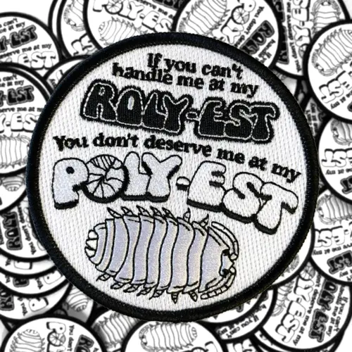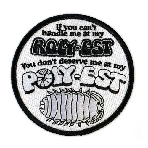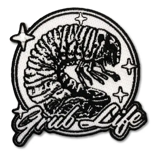 Approximately 9cm embroidered patches with merrowed border in black and white with iron-on backing. Designed in Canada.