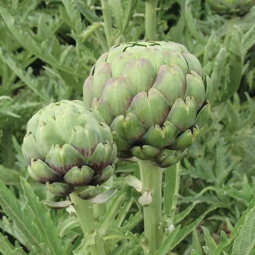 Nearly spineless plants yield 7-8 artichokes averaging 4.5” in diameter. Artichokes are green with purple tips and are buttery and tender when steamed. As an improved Imperial-Star type, Tavor can be grown as an annual from seed.