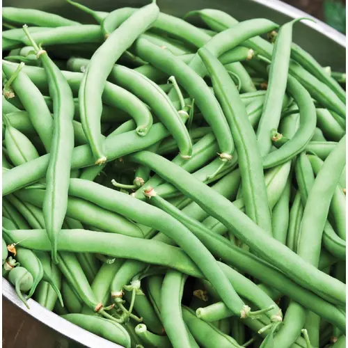 These high-yielding plants produce 15cm (6") long, round, dark green beans that are tender and stringless. Resistant to Bean Mosaic Virus, this variety is delicious fresh, frozen or canned.