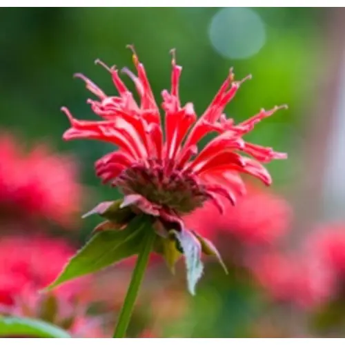 A tall perennial with showy flower clusters that attract bees, butterflies and hummingbirds. Excellent for cutting, it offers a mid-summer splash of colour to perennial borders, flower beds, and herb gardens. As a member of the mint family, it also boasts sweetly scented flowers and foliage. Bee Balm grows best in a sunny or partially shaded spot with rich, moist soil. The large bright red blooms are held on tall, sturdy stems that reach 60cm (24") in height.