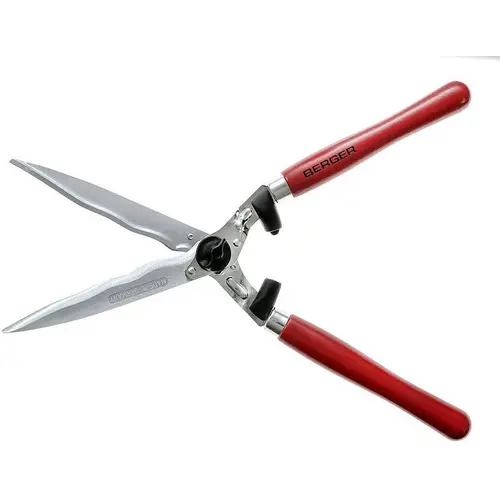 The hedge shear combines outstanding performance, durability and user comfort. The blades are self-sharpened and chromium-plated which prevents corrosion. The blades are forged and have a built-in sap groove, which ensures clean trimming. The shear is well-balanced which does not put any strain on arms. The handles are made of beech wood and come with shock-absorbent buffers. The shear can be adjusted from the middle nut and bolt according to the density of the plant.