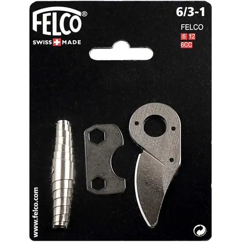 These replacement parts are specifically designed for the F6 & F12 Felco hand pruner models. You'll receive one replacement blade (model: 6/3), one replacement spring (model: 6/11), and one adjustment key (model: 2/30).