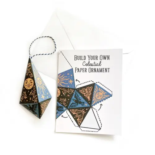 Build your own paper ornaments with these cards, perfect for crafters or fans of quirky decor. These cards come packaged with Instructions and string included. Scissors and tape not included.