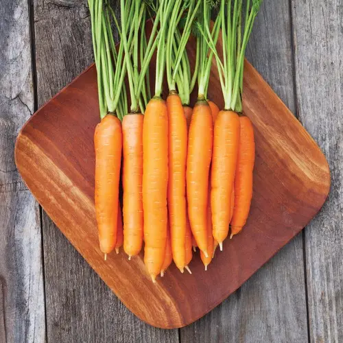 Great sweet flavour, juicy crunch and an incredibly long storage life. This nantes-type carrot has slightly tapered roots, good uniformity, bright colour and strong tops.