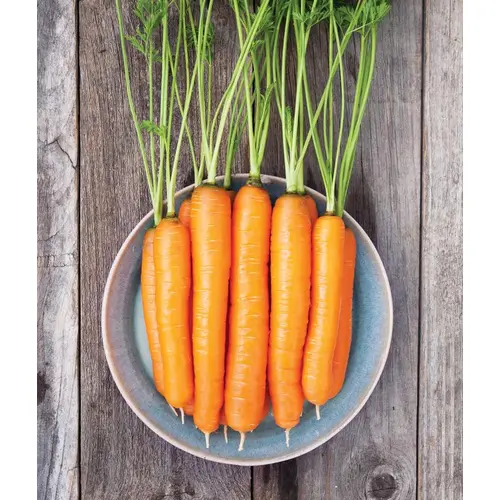 An early, versatile carrot for all seasons. 5-7" roots have a great flavour and colour as an early spring or baby carrot, but will continue to grow to full size for fresh market or storage. Multi-disease resistance.