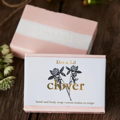 Dot & Lil soaps are finely crafted using a base of plant oils and glycerin and palm oil-free formula. They lather abundantly and last a long time. Each scent is made with a different colorful design, then stamped and wrapped with a patterned label.
