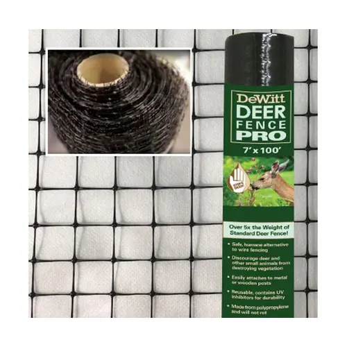 This deer fence netting is made with 3/4-inch square mesh polypropylene that is UV treated for longer lasting durability. Deer fencing is a safe, humane alternative to wire fencing. It discourages deer and small animals from destroying gardens and other valuable landscape plant material. Deer Fence PRO is over 5 times the weight of standard Deer Fence!