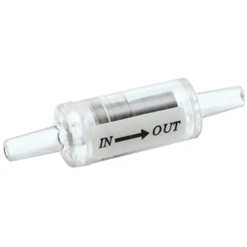 EcoPlus check valve is a must have for every air pump. This product helps prevent back siphoning of water which can damage pumps or even flood water into your rooms. This check valve works by allowing air to flow in one direction and blocking water from getting too far down your air tube. Simply connect the check valve between the air pump and air stone. Works with 3/16 in air tubing.