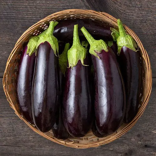 A standout as a very prolific early producer. Slender, attractive dark purple fruit hang in clusters for easy picking. Fruit has mild flavour with no bitterness and a fine, creamy texture. Great choice for eggplants in a short season or for those looking for a high quality open-pollinated variety for commercial production.