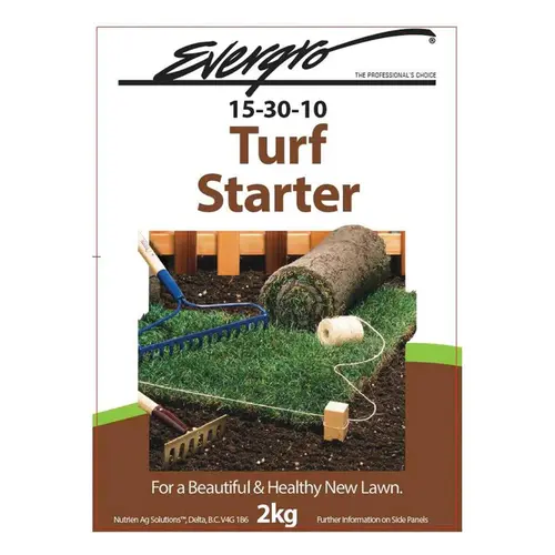 WHEN TO USE: Use Evergro Turf Starter on your soil just prior to seeding or laying sod. Apply in late spring or early fall at the rate of 2kg per 100m squared (1000sq. ft). A second application of Turf Starter fertilizer can be made after 3 mowings.