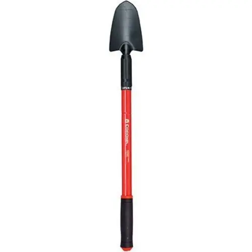 Strong, lightweight steel handle adjusts from 18" to 32" for extra reach. Head is fully heat-treated for enhanced durability. Long-lasting coating resists chips and rust. Comfortable, soft, textured grip with rugged high-impact thermoplastic ferrule. Convenient hanging ring ensures easy storage.