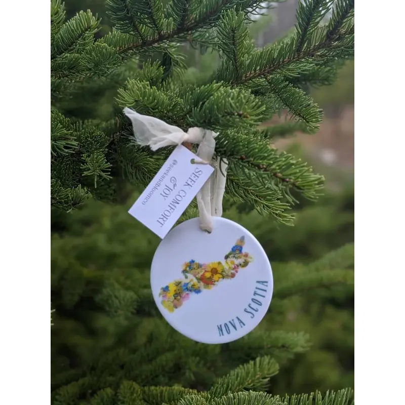 Christmas or everyday ornament for the Nova Scotian or New Brunswicker in your life who is missing home or loves where we live! Locally made, sublimation printed Nova Scotia or New Brunswick pressed flower design.