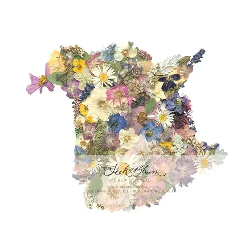 Seek & Bloom Creative Co. Focuses on the slow process of flower pressing while incorporating the modern approach of graphic art to create stationery designs that feel organic and elegant. Products are created using pressed and preserved flowers and foliage foraged from the wild or from flower farms in the Annapolis Valley, Nova Scotia.