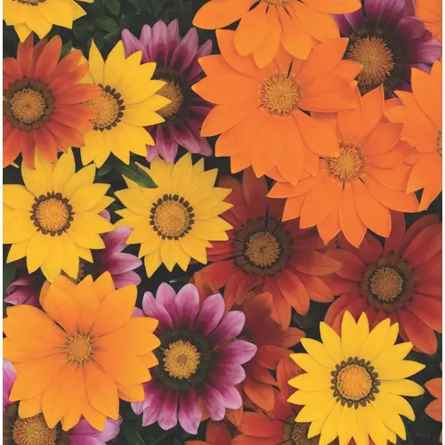 Gazanias flower late spring and into the summer. Plants prefer full sun and can tolerate drought conditions. New Day Bright Mix is a stunning mix that is more compact with larger flowers than most other gazanias. This vibrant collection of flowers include shades of orange, pink, creamy yellow and a distinctive rose striped varity. Growing 20-25cm (8-10") tall and 15-20cm (6-8") wide this mounding variety is perfect in containers and as a bedding plant.