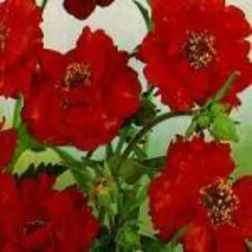 Brick-red semi-double flowers produced on multibranching stems throughout the summer.