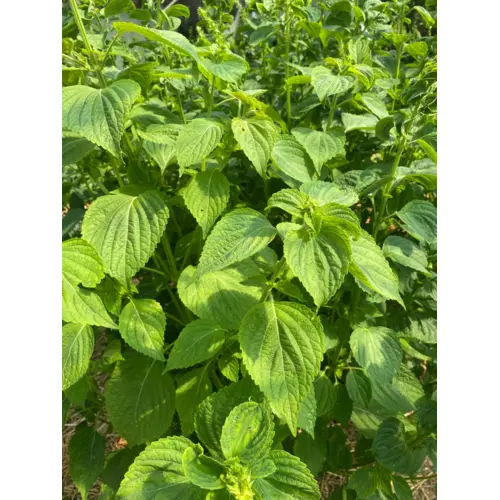 Perilla frutescens - Tall bushy plants are delightfully aromatic. Different aroma than Red Shiso, milder and less cumin-y is how we'd describe it. Good addition to gomasio and topped on salads. 100 seeds