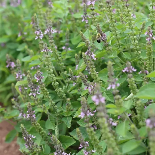 Also known as Sacred Basil. The aromatic leaves make wonderful herbal teas. Leaves are used either fresh from the garden or dried. Very prolific and beautiful plants which keep on growing and flowering all summer and autumn. Bees love them!