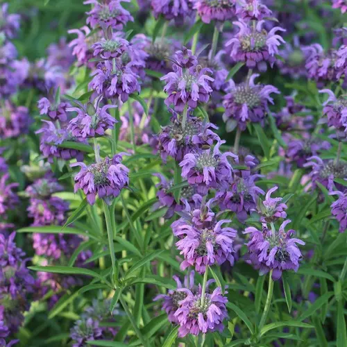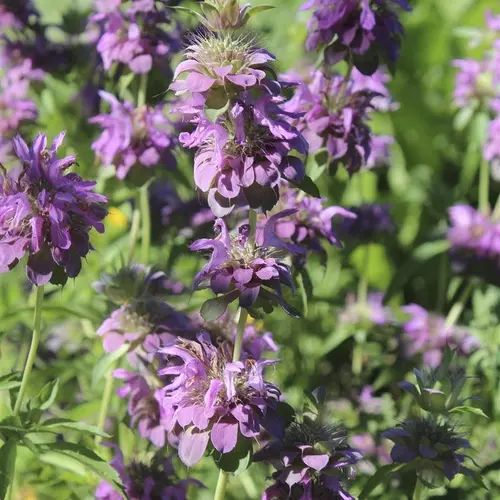 Monarda citriodora - (aka; Lemon Mint) Annual. The young leaves make a lovely tea. Tall tiered spikes of lavender-pink are incredibly aromatic and make excellent cut flowers, and they dry well. A favourite among pollinators. Grown by Twisted Brook and packaged by Annapolis Seeds.