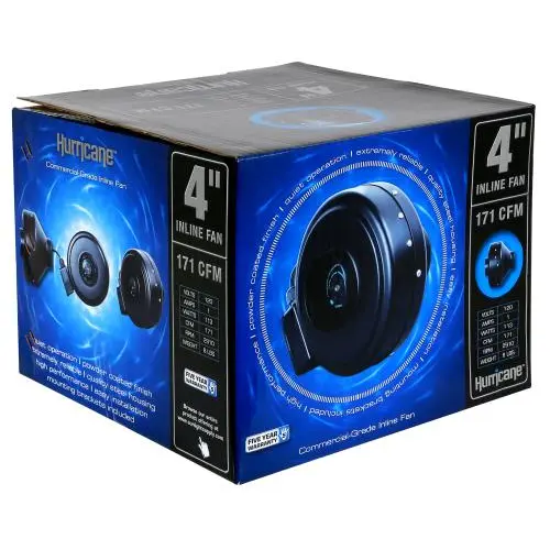 Hurricane® Inline Fans are commercial-grade, high-performance fans. The housings are made of steel with a durable powder-coated finish. Made with quality UL components for quiet operation. Includes mounting brackets with easy-to-follow instructions. Easily installs in minutes. These fans come with an 8 ft 120 V power cord. Extremely reliable, high-performance operation.