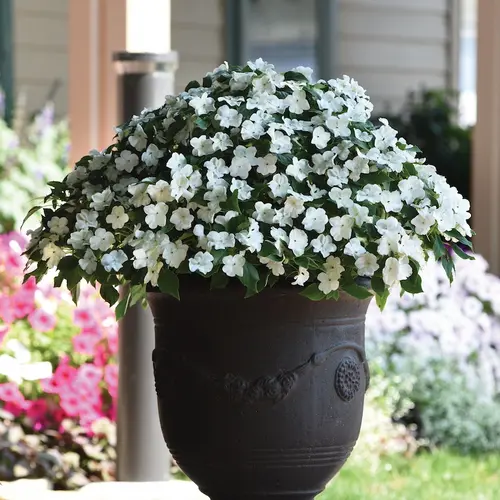 Bring back Impatiens to your shaded flower garden without the risk of Impatients Downy Mildew! The Beacon series impatiens offer season-long colour with monded, upright plants that grow 35-50cm (15-20") high and 30-35cm (12-14") wide. Plants thrive in shade, partial shade, and sun and are perfect planted in garden beds or containers.