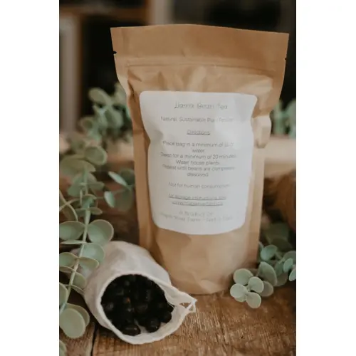 From local llama farm Maple River Farm located in Upper Musquodoboit, Nova Scotia. Ensure your plants get a nutrient boost! Llama bean tea fertilizer is an excellent way to add a nutrient kick to your plants. Soak 1 bag for a minimum of 20 minutes in as little as 1 litre of water and apply to plants. Reuse until beans are completely dissolved and compost the tea bag.