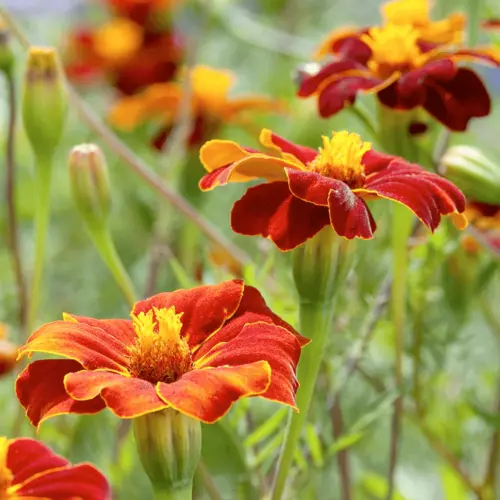 Beautiful bright red-maroon flower petals with lighter edges produced on blue-green ferny foliage. Ideal for cut flowers for the home or in arrangements. Plants have a long flowering period. Grow with tomatoes to protect from pests.