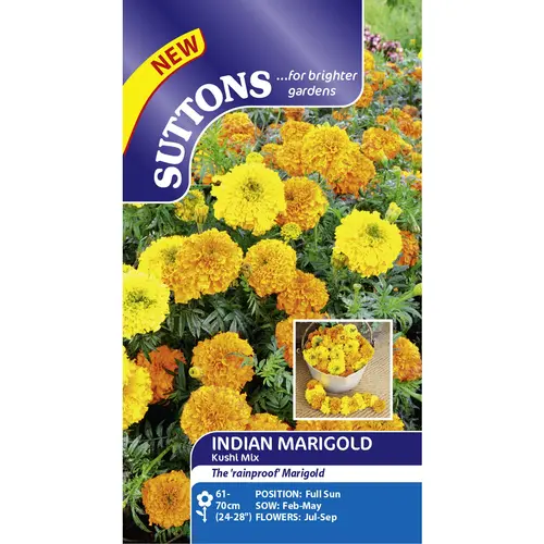 The first Indian Marigold to the UK market! Inspired by the beautiful streams of garlands created for weddings and occasions throughout India. Kushi means 'Joy' in Hindi. Ideal for spicing up your summer borders and pots, mix with vibrant pinks and blues to create the look! With longer stems this is the ideal marigold for cutting. Use the flowerheads for garlands to dress your garden and home throughout the summer, perfect for BBQ's and party decor as well as jazzing up your outdoor plantings! Flowers July-September. Height 60-70cm (24-28").