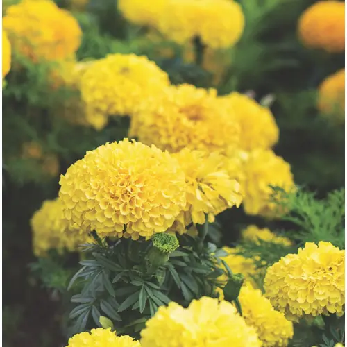 Tagetes erecta | 7-14 Days | Full Sun | Average | 8" | Yellow | Early Summer / Fall | Attracts Pollinators |