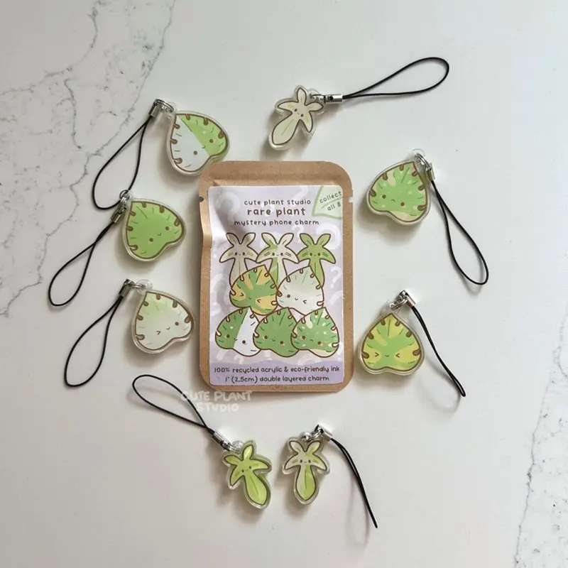 Are you an aroid lover? Grab a mystery bag, where your leaf chooses you! They're made from 100% recycled acrylic, diverted from landfills and incineration, so you can accessorize sustainably. Whether you’re a proud plant parent or just a fan of all things green and cute, these keychains and phone charms are perfect for adding a touch of botanical charm to your everyday essentials.