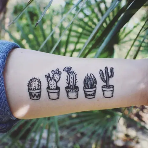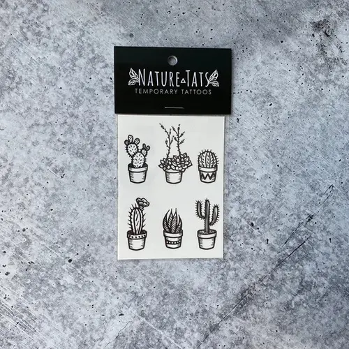 - Potted Cactus: Six little potted cacti and succulent temporary tattoos! A dark black line design style. Perfect gift for succulent lovers, cactus lovers, and desert lovers!