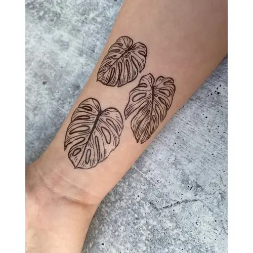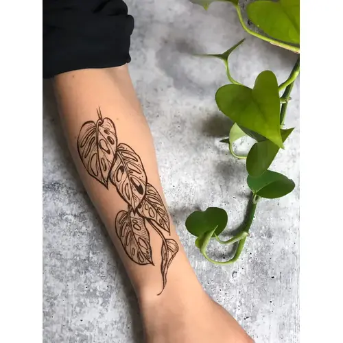 - Monstera Vine: This hand-drawn temporary tattoo design features a healthy cutting of the trendy house plant, Monstera Adansonii. These jungle vines have several slits in the leaves and a curiosity to them that has plant nerds absolutely obsessed. This design is about 6.5" long.