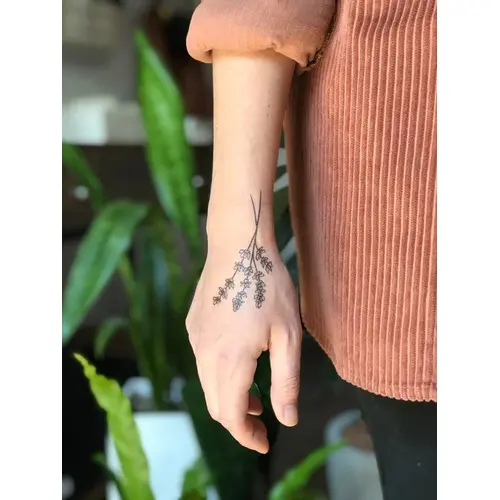 - Lavender Twigs: The long adored lavender plant, and its sweet floral scent, is widely appreciated for its comforting nature. This original hand-drawn design includes 2 petite lavender twigs, each about 3 inches long.