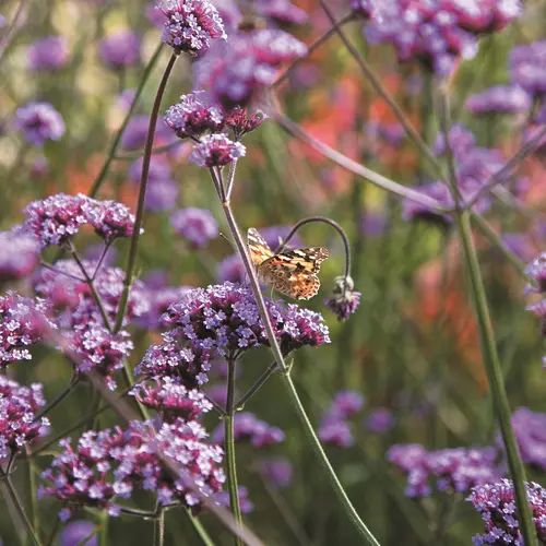 Sprays of purple flowers on long, strong stems. A long-flowering perennial for the back of a border, producing a beautifully airy display that will last throughout summer and autumn. Flowers are enhanced by the deep coloured stems. Flowers June-October. Height 90-100cm (35-40").