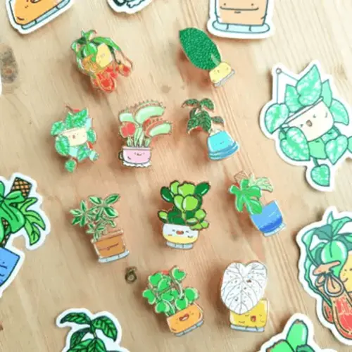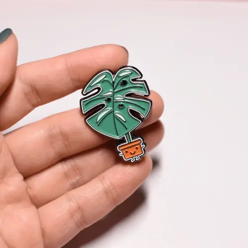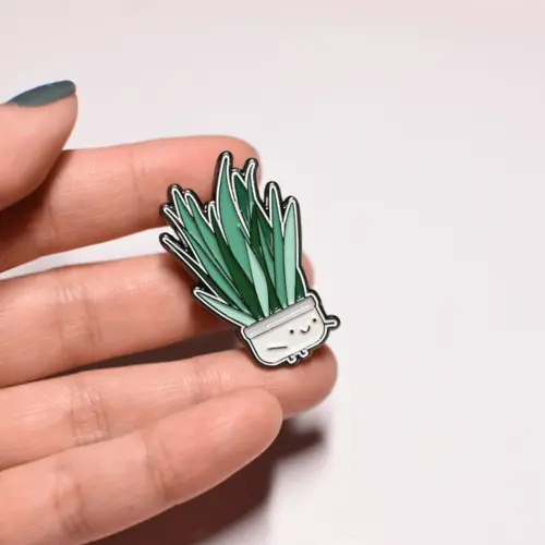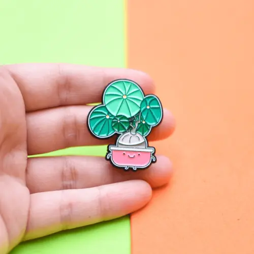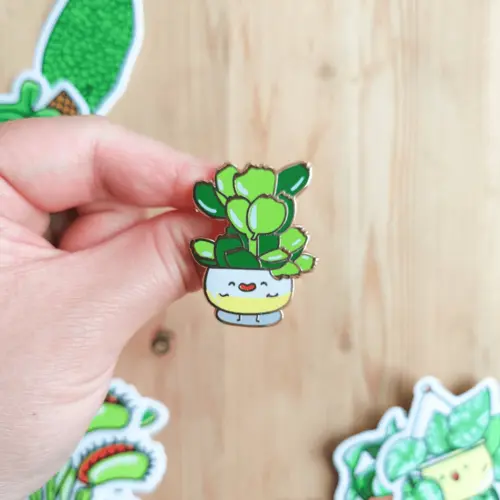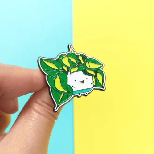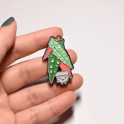 Perfect for jackets, backpacks, and more, these cute pins are available in multiple houseplant inspired designs. Made from rose gold plated hard enamel with rubber backings. Designed in Canada.