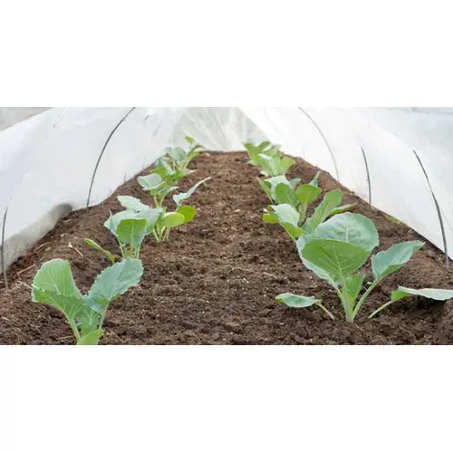 This seed and plant guard is a lightweight, 5 ounces, spunbond fabric. It creates an excellent microenvironment for seed germination and seedling growth. This fabric provides a 90 to 95 percent average seed germination compared to 60 to 65 percent with straw or hay and can be used as a low cost insulation against the elements. Row cover can also be used to diffuse light, and protect crops against pests.