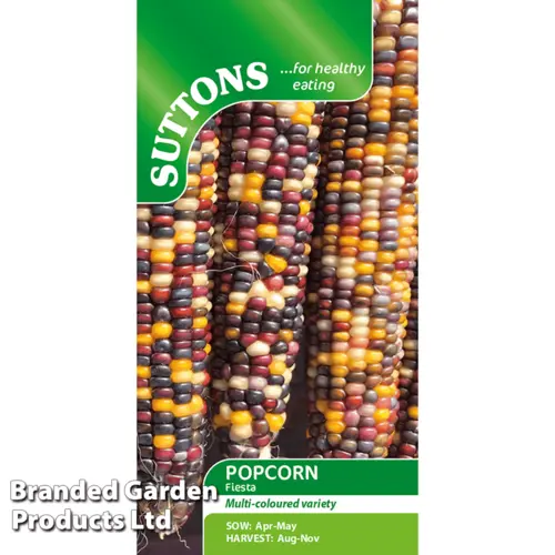 This multi-coloured popping corn is both edible and ornamental. A great way to encourage children to eat veg - watch your cobs leap about with every pop! Tastes like popcorn. As tasty as it is ornamental, Popcorn Fiesta is the one sure-fire way to get kids to eat their veg. Particularly when they get to see the whole ear somersaulting in the microwave, spitting out little white clouds of deliciousness! Growing popcorn is just as easy as regular sweetcorn and can essentially be treated in the exact same way. The only key difference between them is that popcorn requires a slightly longer growing season to allow its kernels to fully ripen, unlike sweetcorn which is harvested when its ears are still immature. Origin: South America - Latin name: Zea mays. Sow: April-May. Harvest: August-November.