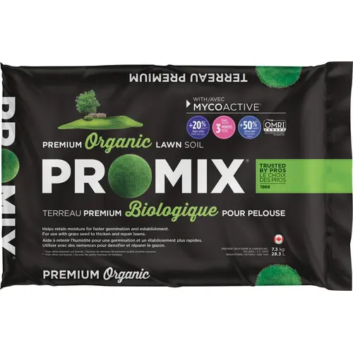 This PRO-MIX premium organic lawn soil with MYCOACTIVE is a compost/peat/humus blend that is specially formulated to grow grass seedlings by stimulating their root system.