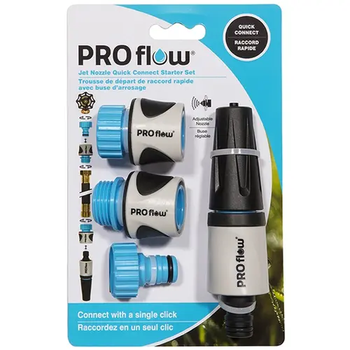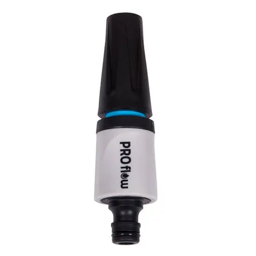 ProFlow's jet nozzle kit that allows you to simply change the spray pattern from an "off" position to a strong jet or fine mist spray. The 12 mm nozzle made from robust plastic includes a male and female hose connector. tap connector, and quick connect. This product is backed by a 2-year warranty. Compatible with other ProFlow 'Quick Connect' components.