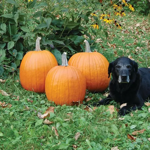 The original Jack O" Lantern with rich orange colour, deep ridges, and sturdy handles. 25lb fruit is reliable and tolerant of black rot.
