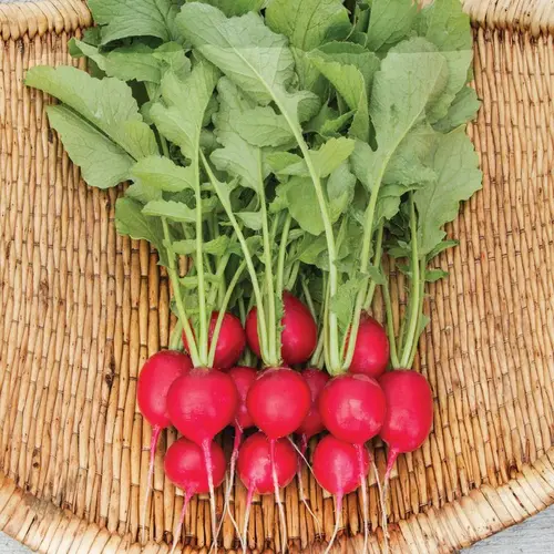 Classic smooth red bunching radish with attractive crispy white flesh. Uniform 1" roots are easy and fast to grow, with less pithiness than other radishes. An All-American Selection (AAS) award winning variety.