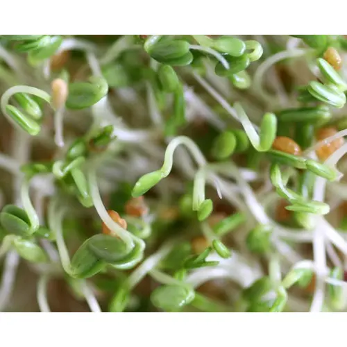 These 5-day sprouts are similar to alfalfa, but even easier to grow and a mild-sweet flavour. Rich in vitamins A, B, C, E, & K as well as minerals and trace elements.