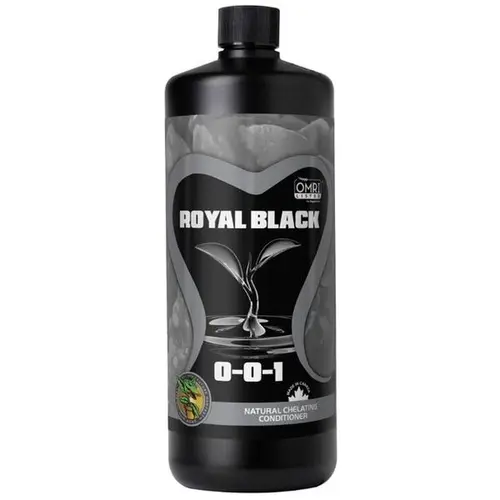 Royal Black is OMRI Listed for Organic Use. Royal Black chelates nutrients like magnesium, calcium and iron and provides natural carrier compounds that transport nutrients and vitamins into your plants more efficiently enhancing their growth. It also stimulates roots and enzymatic function, increases vitality in seedlings and clones and assists in the more efficient utilization of nutrients and vitamins. Key Features: Enriched with a small amount of potassium silicate for extra plant benefits such as stronger cell walls and increased chlorophyll production, so no need for any extra silicon products when using Royal Black, works well in mediums such as soil and coco and with any branded fertilizer or additive, pre-treat pots with Royal Black, especially when using coco (this does not contain any humate matter like soil) to get plants off to a good start