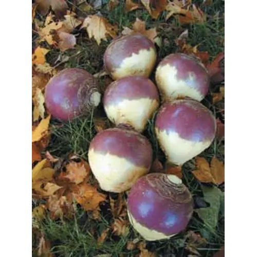 This hardy variety offers large globe-shaped roots that grow 13-15cm (5-6") in diameter. The smooth skin has deep purple shoulders and a yellow bottom with fine-flavoured creamy yellow flesh. Clubroot resistant variety.