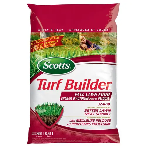 This phosphate-free lawn food gives your lawn the nutrients it needs to better withstand Winter stressors. Come next Spring, youll get a thank-you in the form of an early Spring greening. Plus, with Scotts Turf Builder Fall Lawn Food, you can apply, then play with no delay. That means you can re-enter grassy areas immediately after spreading. No watering-in is needed, either. Ah. Even more to love about Autumn.
