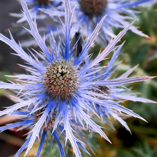 Striking, spiky, violet-blue textural looking plant that hones in butterflies, bees and small birds into your garden. Lovely vibrant colour that adds zing to your borders amp; pots throughout the summer into autumn. Leave the flower stems on throughout the winter where possible, this will give you interest in the winter months especially when the frost settles onto the spikey-like growth. Flowers July-October. Height 80-90cm (32-36").