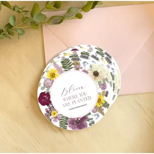 Locally made vinyl stickers from Seek & Bloom featuring pressed flower designs. These vinyl die-cut sticker are perfect for laptops, water bottles, hydro flasks, notebooks, phone cases, and vehicles. Made from high-quality thick, durable vinyl, beautifully printed, durable, and waterproof. Vinyl is resistant to scratches, water & sunlight. Available in several designs below.